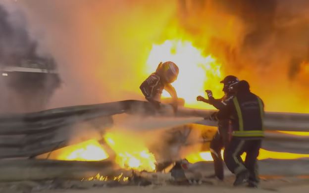No GP do Bahrein de 2020, logo na largada, Romain Grosjean, então piloto na Haas, se envolveu num acidente brutal após um toque com o carro de Daniil Kvyat.