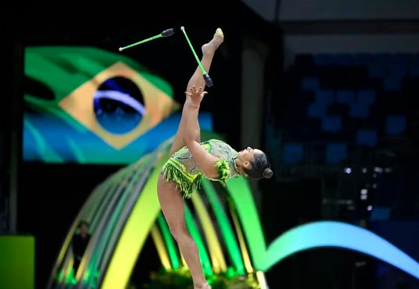 No segundo dia do Mundial de Ginástica Rítmica, na Arena Carioca 1, no Rio de Janeiro, Geovanna Santos e Bárbara Domingos encantaram a torcida com apresentações de maças e fita. Nesta quinta-feira (21), Geovanna abriu as competições com uma série dramática nas maças, marcando 27.600, apesar de um erro. Bárbara, ao som de “Garota de Ipanema”, somou 25.150. Na fita, Geovanna alcançou 26.800, e Bárbara, com “Aquele Abraço”, obteve 27.200, ambas ovacionadas.