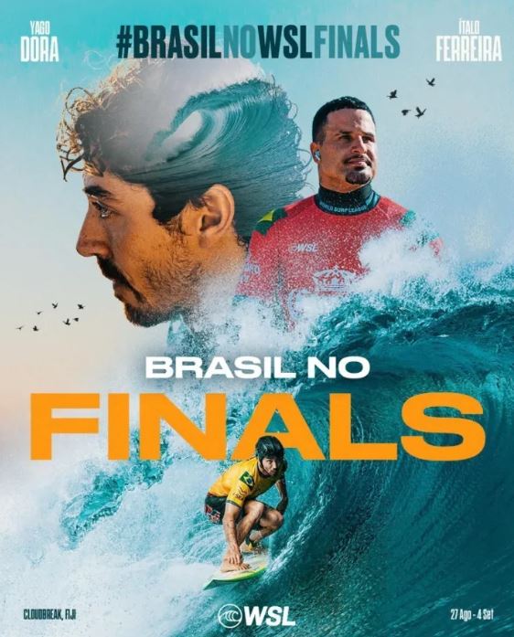 A WSL Brasil lançou a campanha #BrasilnoWSLFinals, convocando torcedores de todo o país a apoiar Yago Dora e Ítalo Ferreira nas decisões do Mundial de Surfe, que serão definidas nas desafiadoras ondas de Cloudbreak, em Fiji. O objetivo é fortalecer a torcida nas redes sociais através da hashtag para demonstrar apoio aos brasileiros na competição.