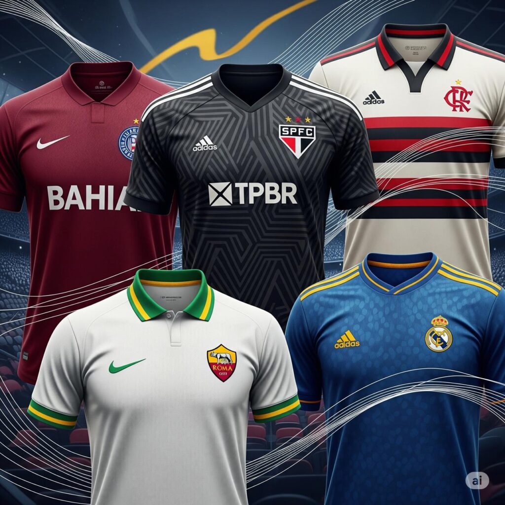 O final da temporada europeia e a reta final do primeiro turno do Brasileirão têm sido marcados não só pelos jogos, mas também por uma série de lançamentos de terceiros uniformes que prometem agitar o mercado e o coração dos torcedores. Clubes gigantes como Real Madrid, Roma, Flamengo, São Paulo e Bahia revelaram seus novos mantos nos últimos meses, trazendo consigo narrativas ricas e homenagens a momentos icônicos de suas histórias.