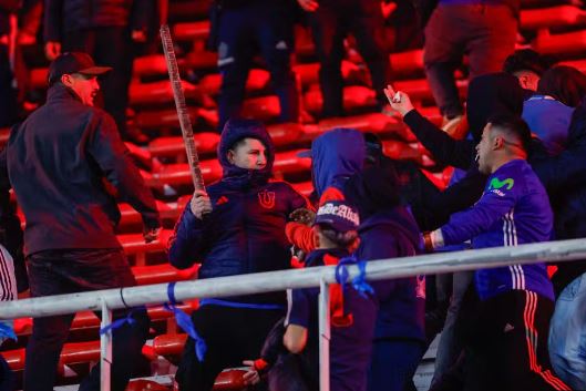 O tumulto começou no intervalo, com torcedores chilenos arremessando cadeiras, pedras e objetos incendiários contra a torcida local. A reação dos argentinos gerou cenas de caos, com invasão do campo, agressões e um torcedor chileno pulando da arquibancada para escapar. Centenas foram detidos, e há relatos de feridos graves.