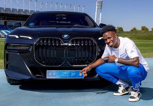 Kylian Mbappé posou ao lado de um BMW i7 branco, o sedã elétrico de 544 cavalos que atinge 250 km/h, avaliado em cerca de 145 mil euros. Vinícius Júnior optou pelo i7 M70 xDrive preto, o elétrico mais rápido da linha, com 659 cv e preço de 186 mil euros, ideal para o atacante veloz. Jude Bellingham seguiu o mesmo modelo, mas em preto, enquanto Rodrygo e Endrick escolheram o XM, o SUV híbrido de design agressivo e 88 km de autonomia elétrica. Éder Militão preferiu um i7 branco discreto, e Fede Valverde curtiu o interior de seu i7, destacando o conforto para viagens longas.